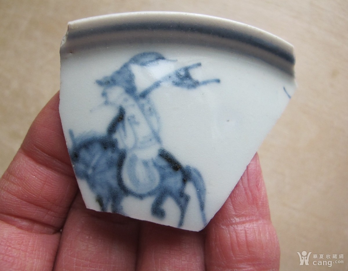 特价扛小旗骑马人物 成化--弘治 细路青花 边沿 标本