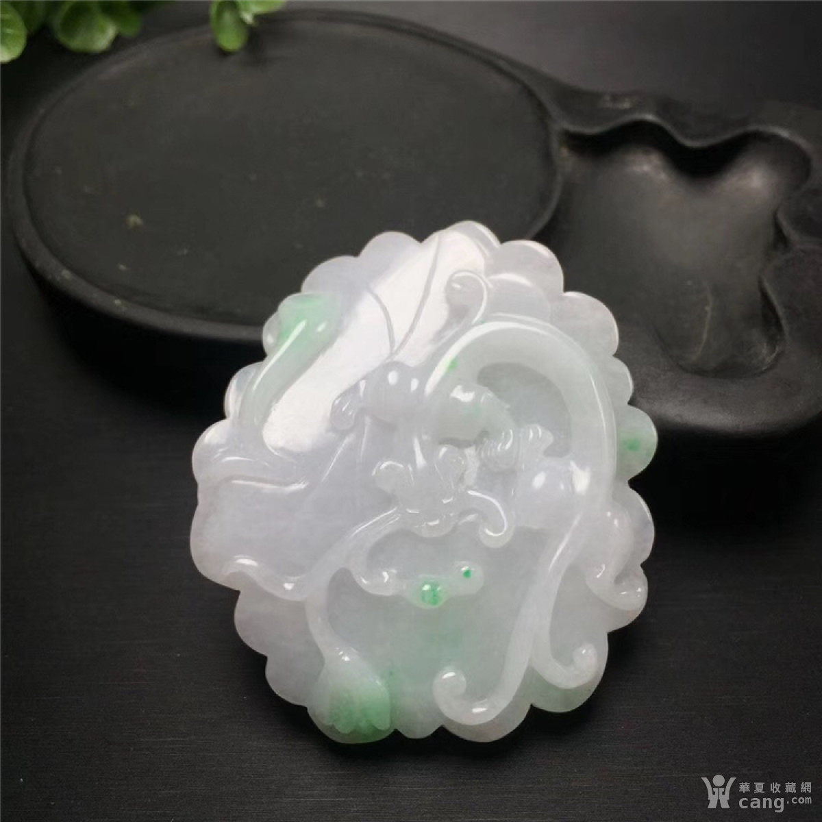 b217民国解放初白底青翡翠螭龙荷叶吊坠