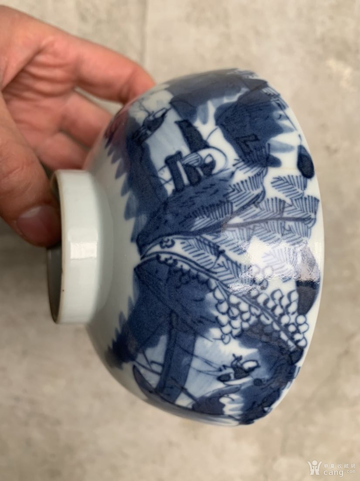 清中晚期嘉庆道光青花渔樵耕读敞口碗