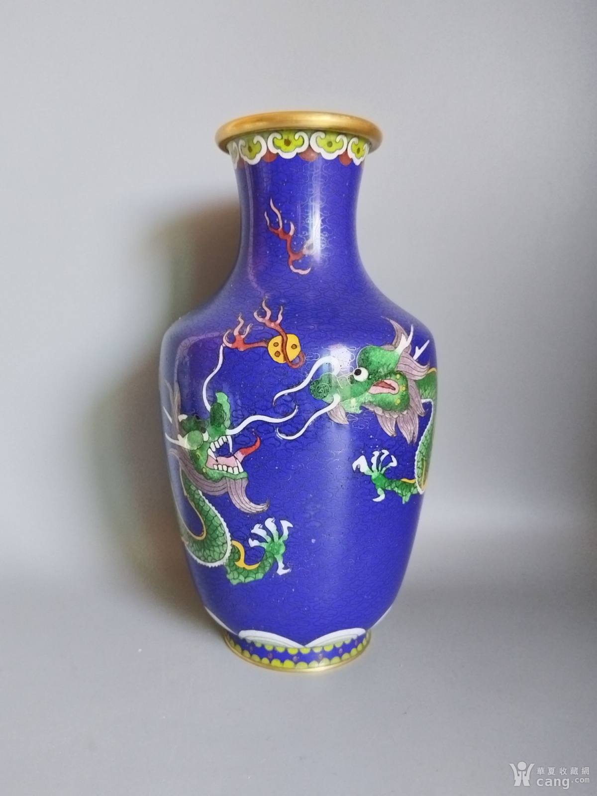 解放初铜胎掐丝珐琅双龙戏珠赏瓶 全品