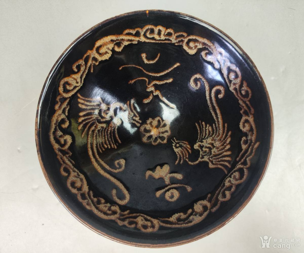 宋吉州窑黑釉剪纸帖花双凤纹盏(宋960-1279年)