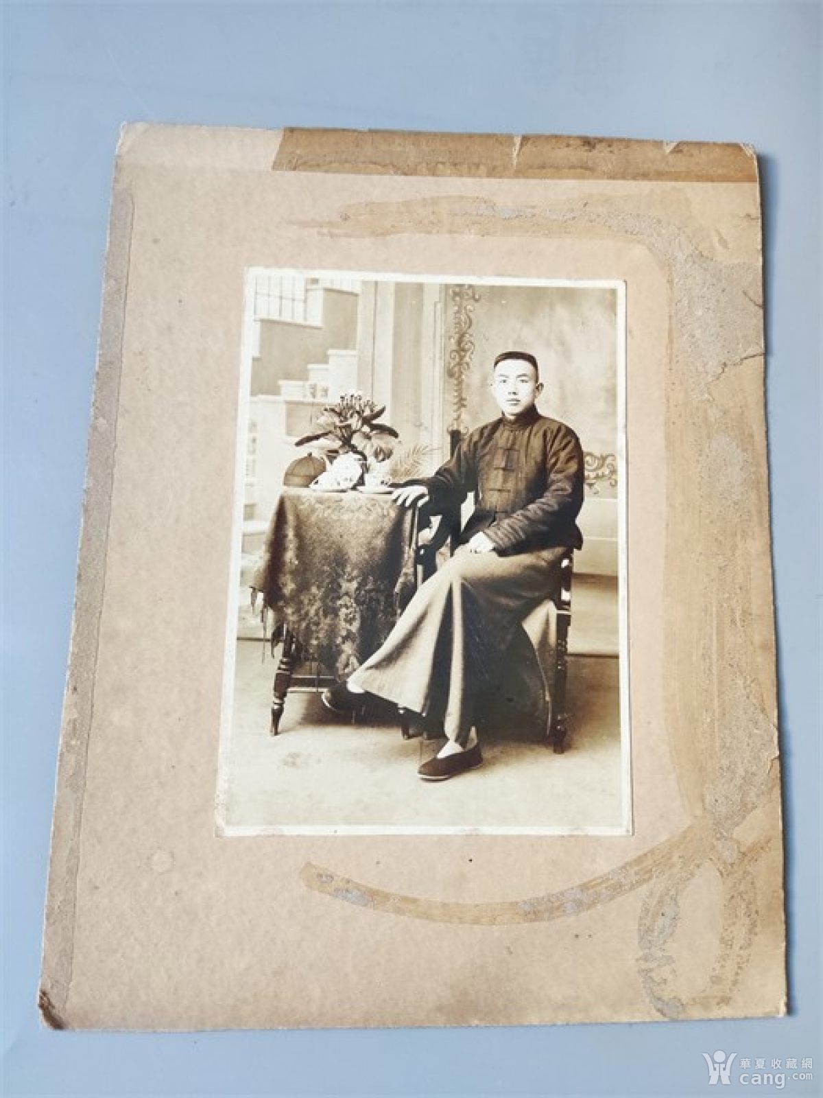 民国时期拍摄穿长袍马褂戴瓜皮帽的年轻人照片