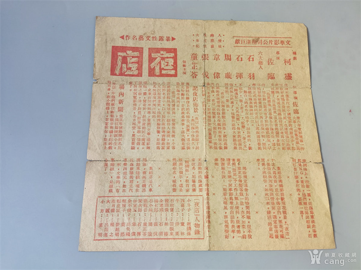 民国时文华影片公司巨献周旋等主演的夜店剧照宣传单