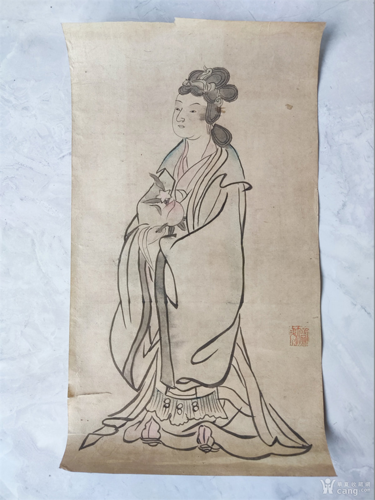 清代盖籣斎印章的彩绘麻姑献寿图人物画