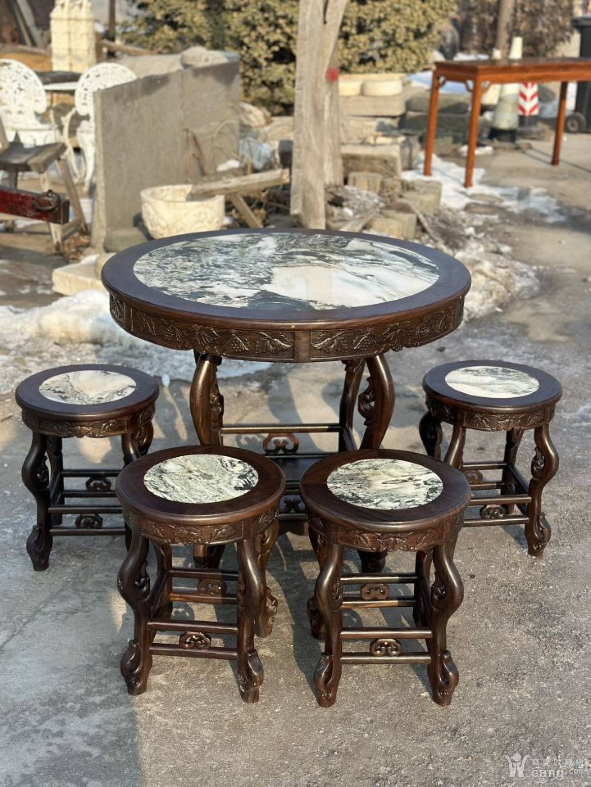 黑檀木 圆桌 五件套 镶嵌天然云石 分量十足 锓卯结构 喜欢