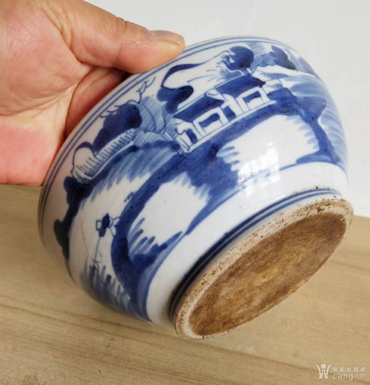 清中期青花山水大药钵