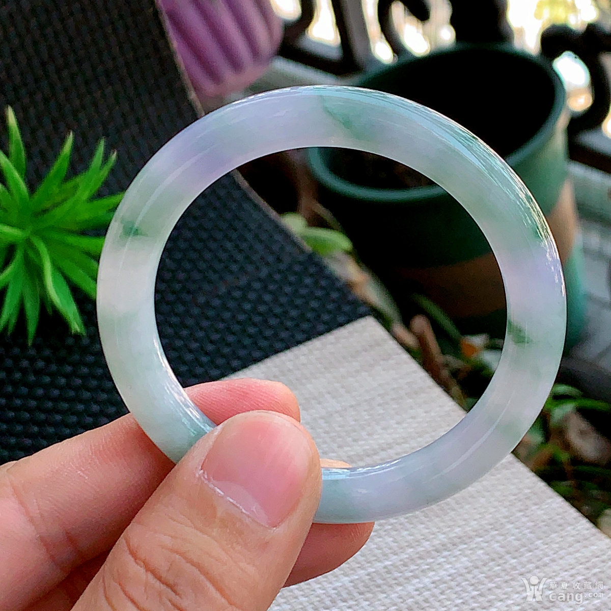 缅甸天然翡翠A货冰透水润春带彩圆条手镯53.8圈口