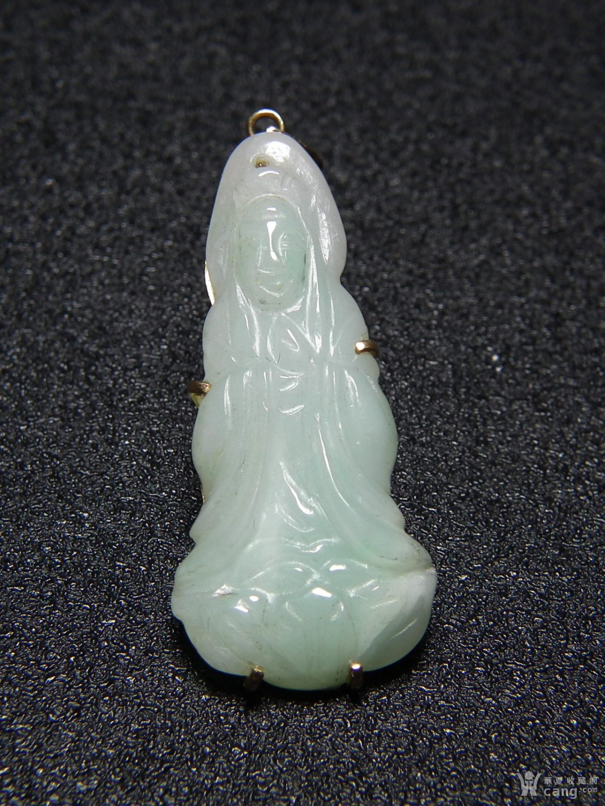 1224老坑A货冰种淡绿色翡翠莲花座观音包14k金大坠佩