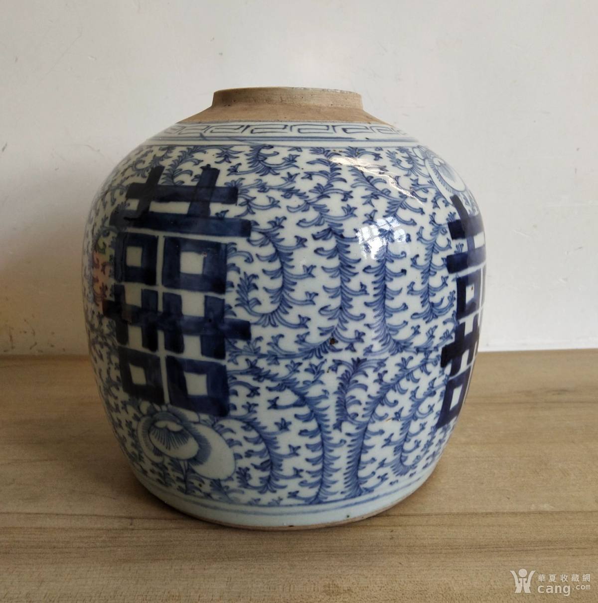 清中期青花细路缠枝四喜大号罐