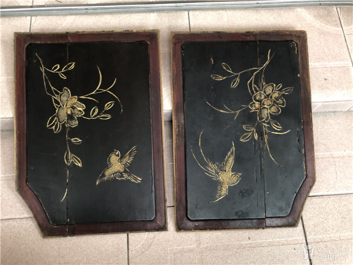 清代描金花鸟雕板一对