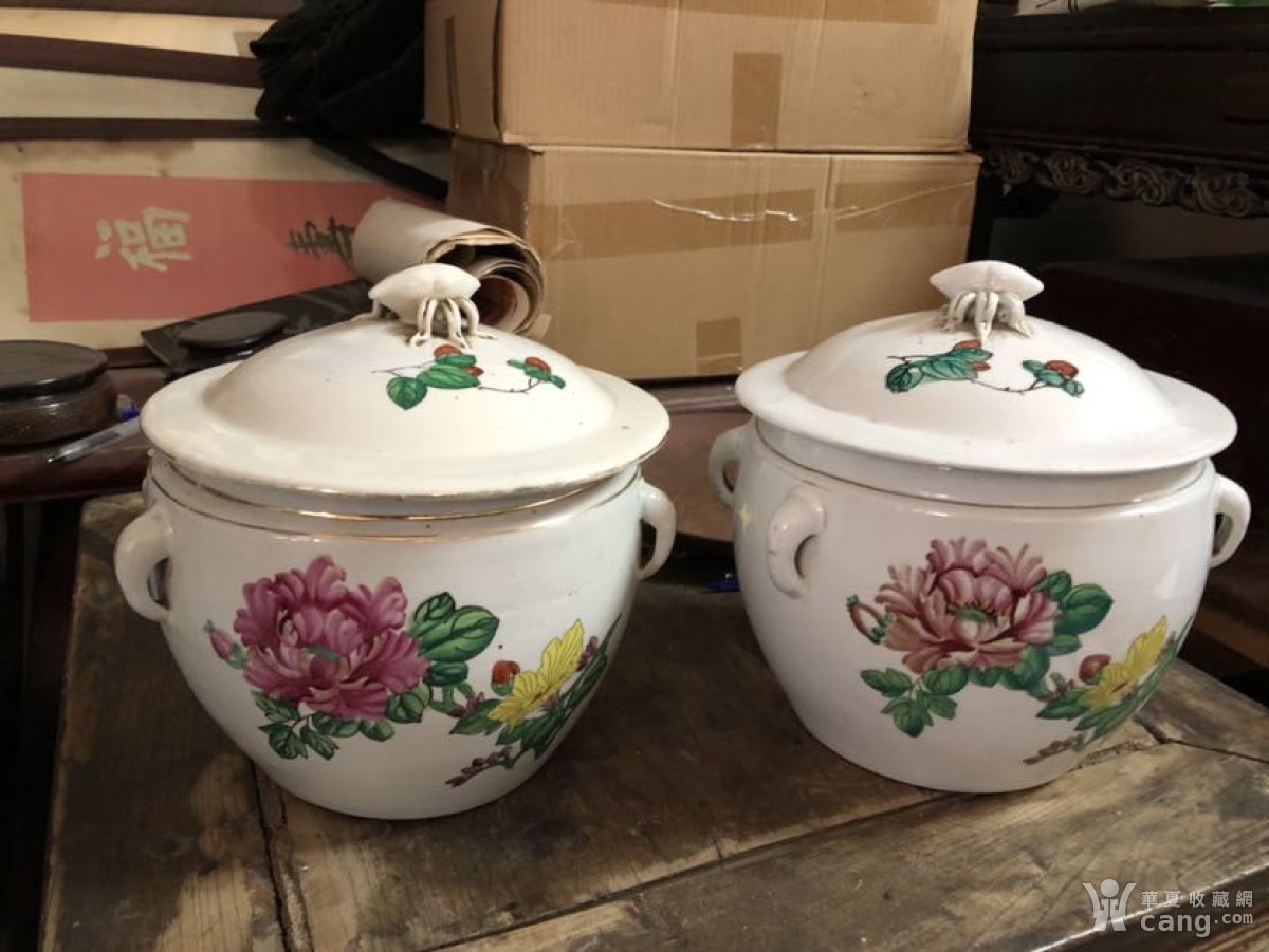 老粉彩罐一对