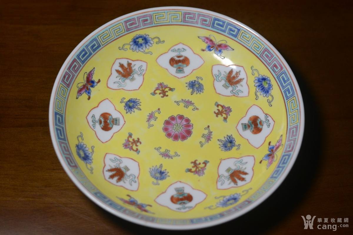 香港回流60年代早期草帽款黄地五谷丰登窝盘