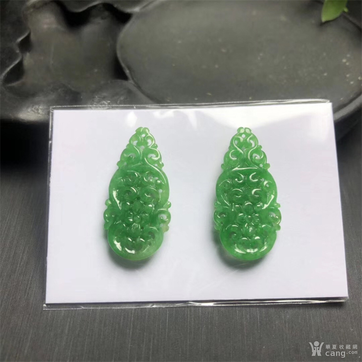 E183天然A货糯冰种飘绿翡翠缠枝花卉纹花片一对