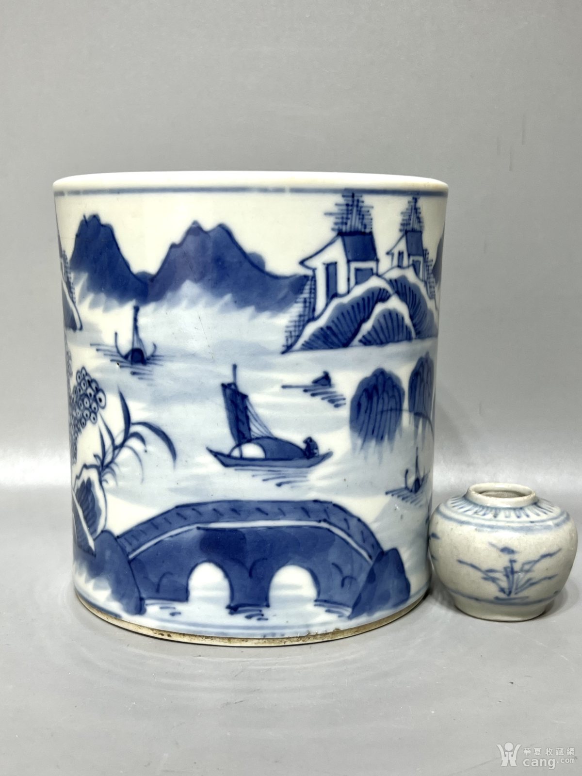 清乾隆精品青花山水亭台楼阁纹大笔筒