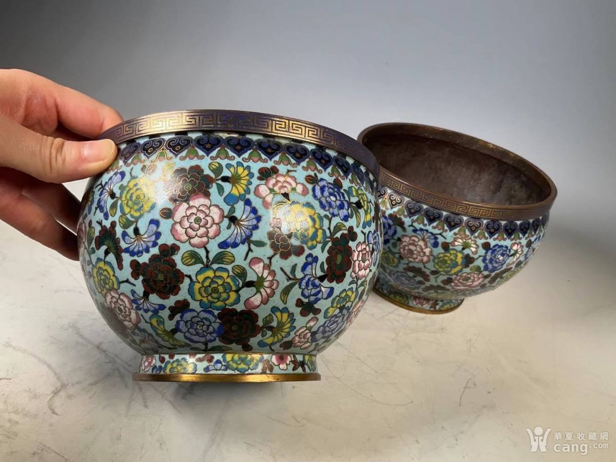 晚清民国景泰蓝万花万寿无疆卷缸一对