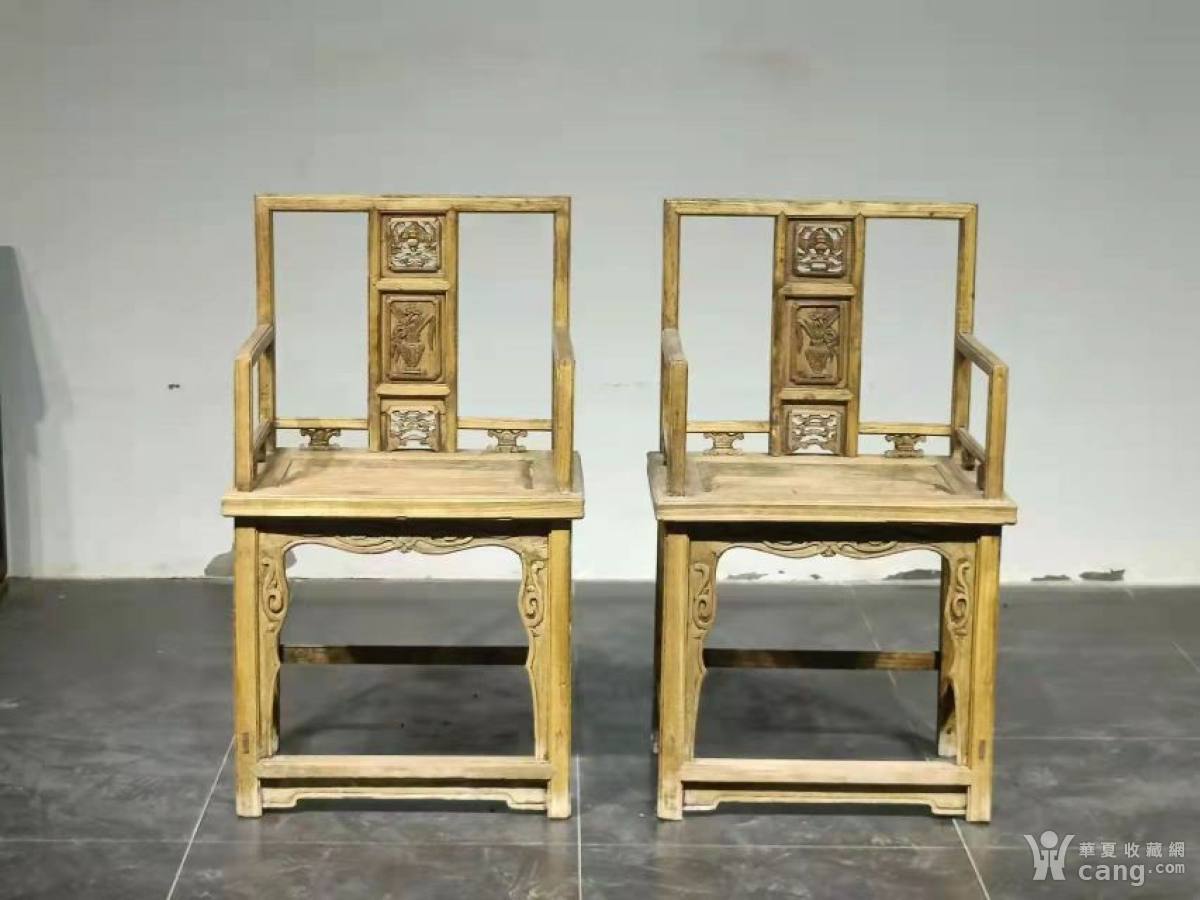 高浮雕工,围栏夹元宝花,玫瑰椅一对,58ⅹ45ⅹ96厘米,榆