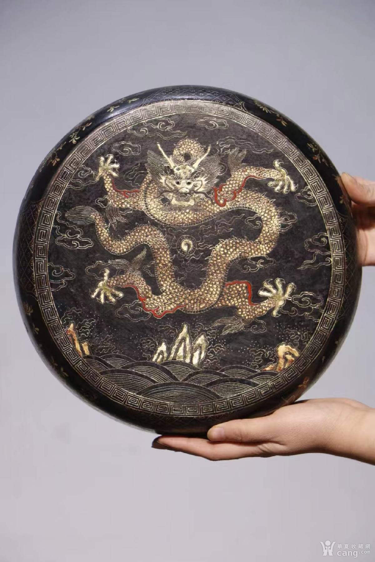 大漆描金|正龙纹捧盒 此器通体描金,盒体描花