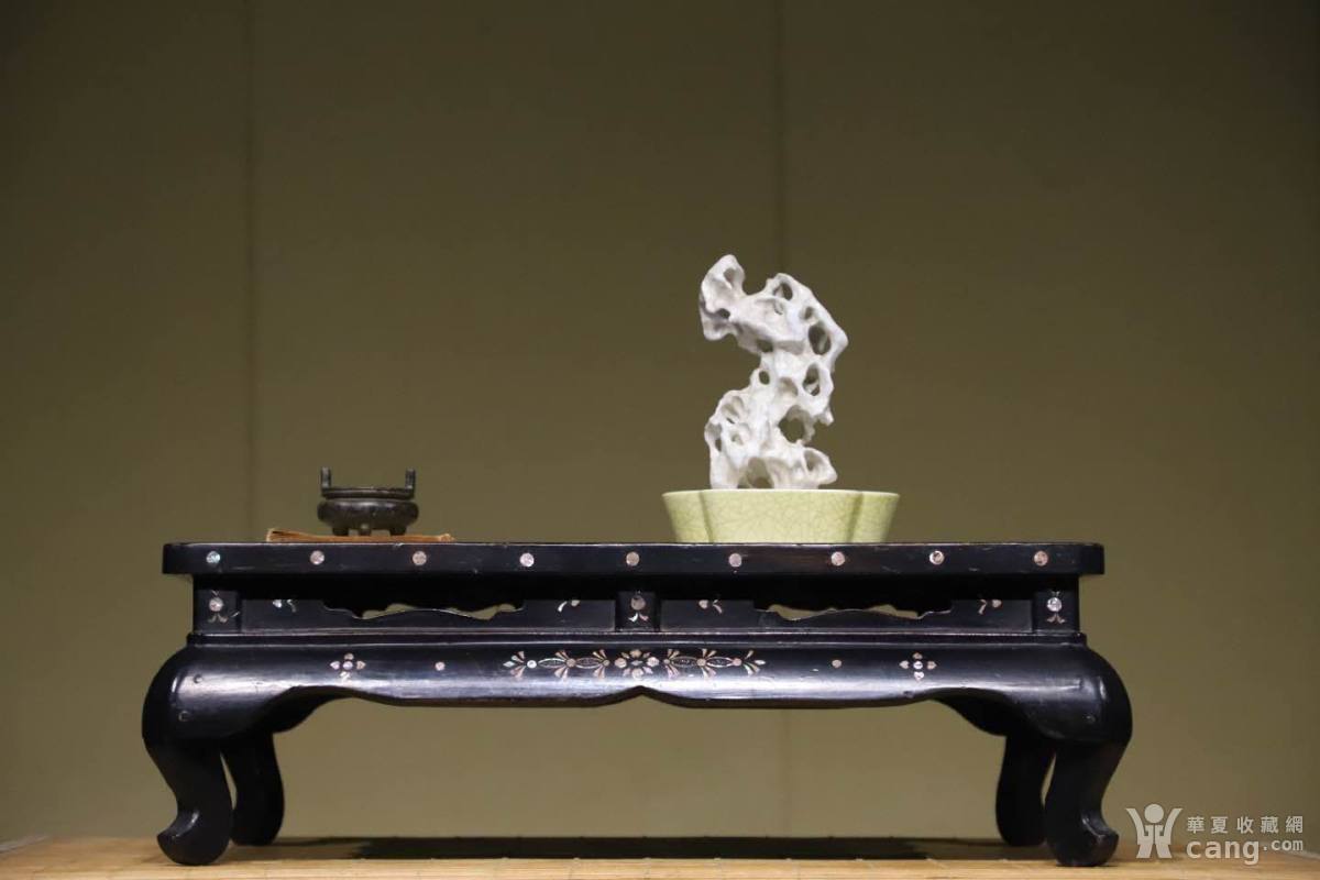 大漆嵌螺钿山水纹案几 此案几器型经典,高束腰四侧带开光