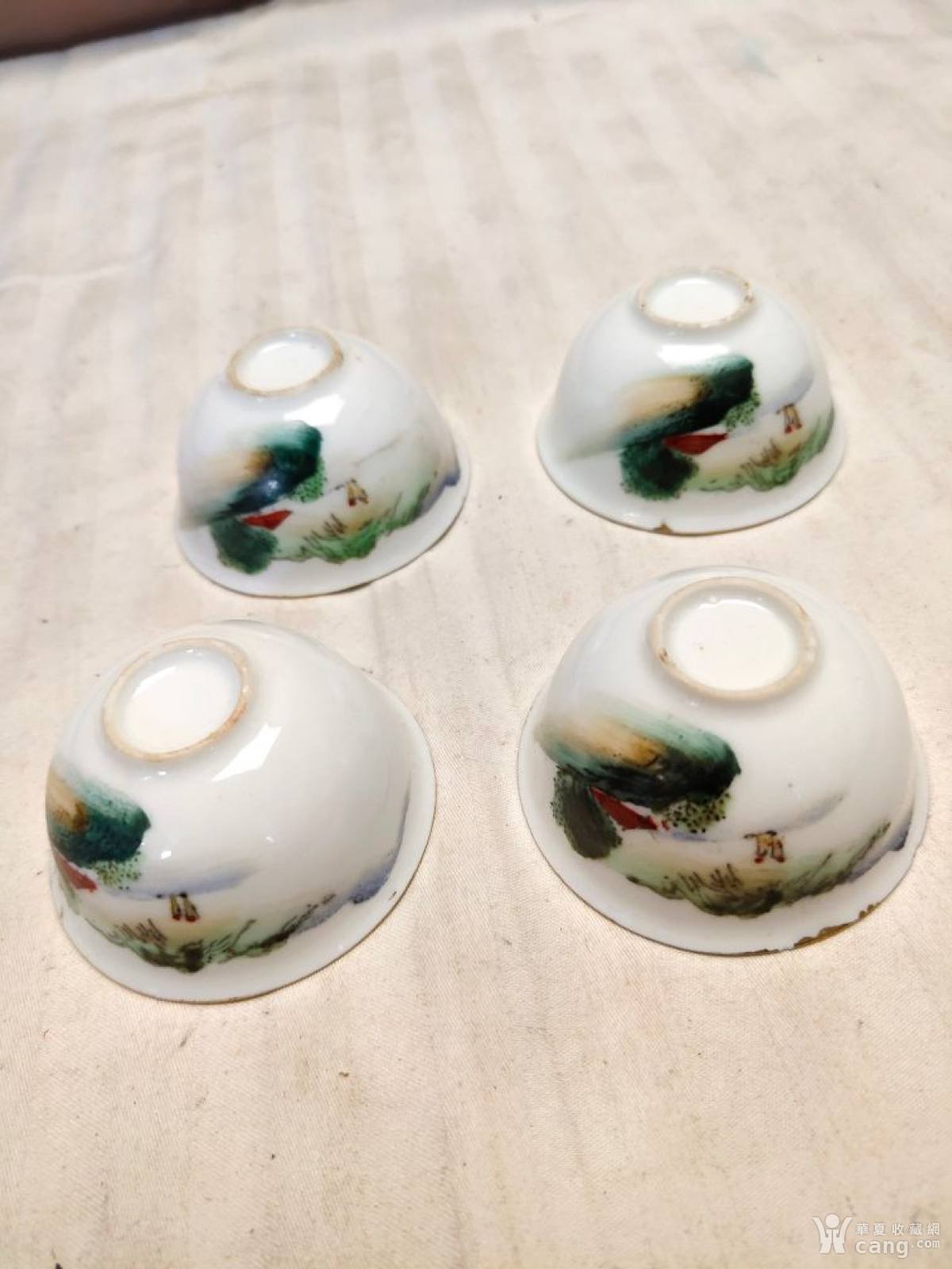 四个手绘山水杯子,可以做茶杯或者酒杯用,绘画精美
