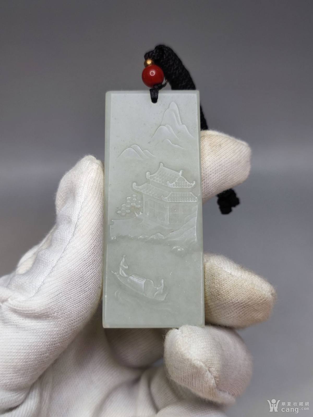 和田玉挂件,山水牌子。远山近水,亭台楼阁。