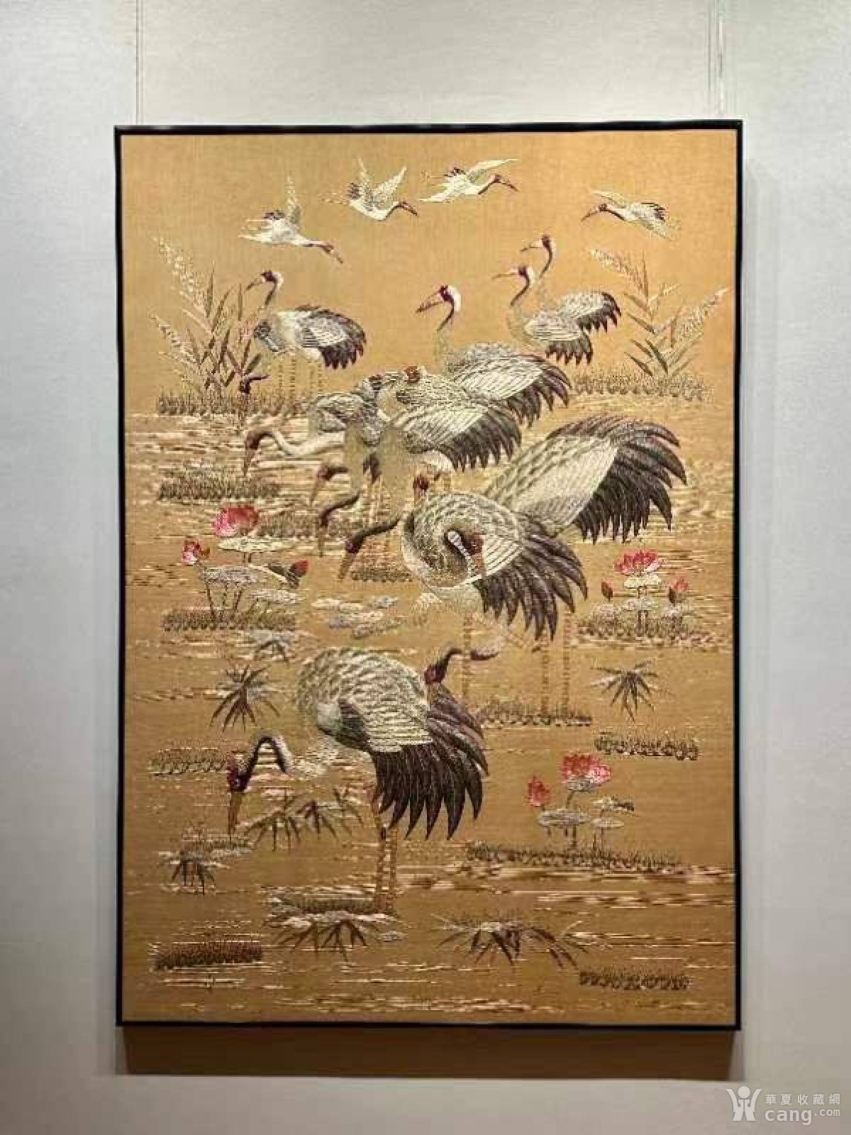 晚清刺绣《一品仙鹤》,尺寸162×112厘米。大尺寸的很少,
