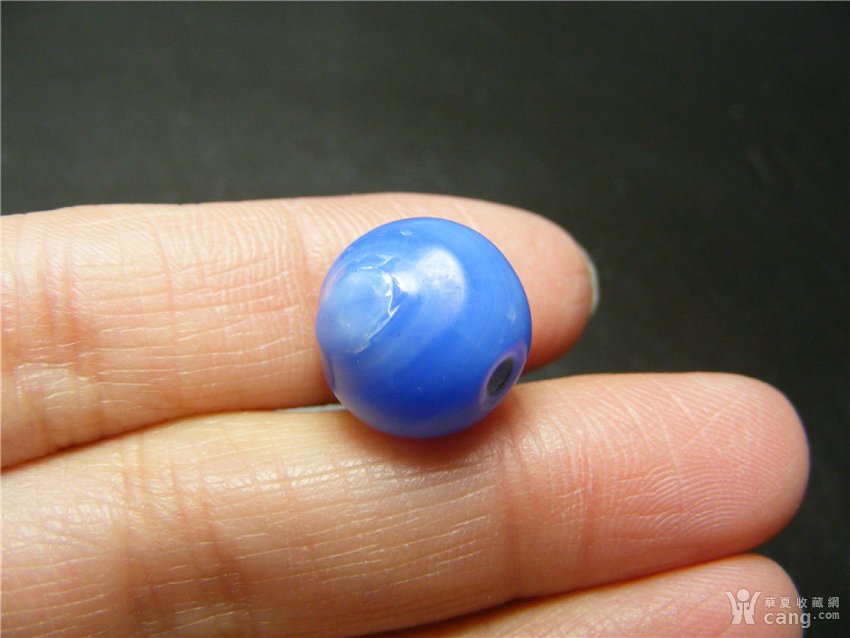 U23 老西亚上百年的老蓝色带灰皮玛瑙大圆珠