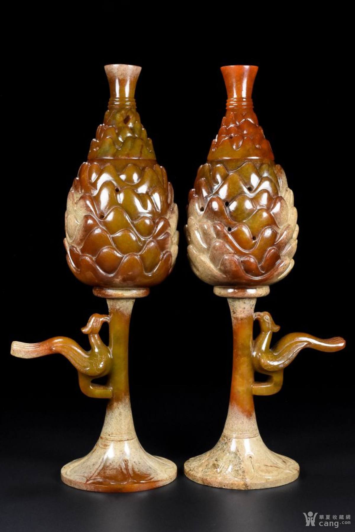 高丽青瓷云鹤镂空双胎花瓶(带供箱)