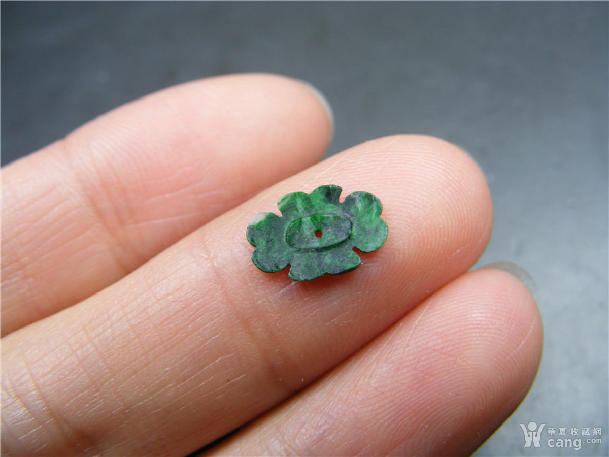 139 A货满浓绿色翡翠单面工浅打洼带孔四瓣花花片小帽饰