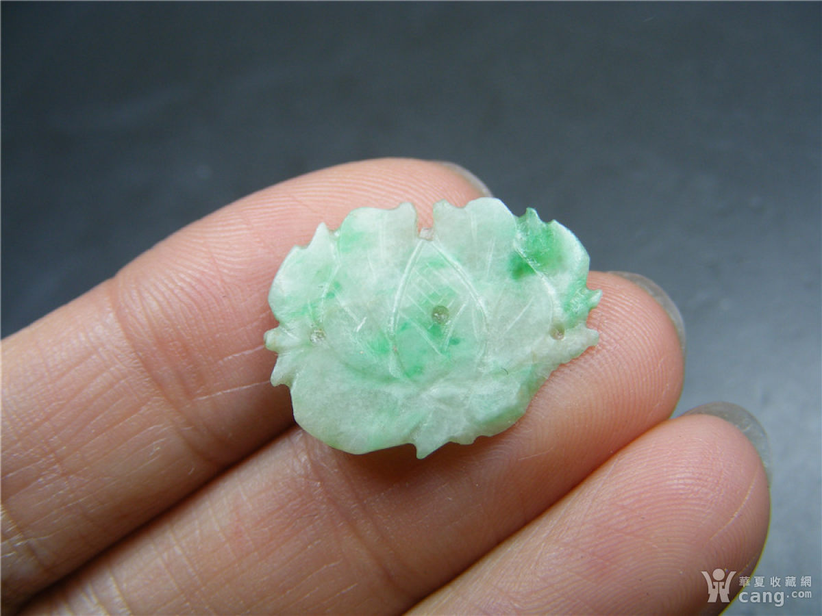 132 A货飘阳绿翡翠单面工浅打洼带孔宝相花小帽饰残件