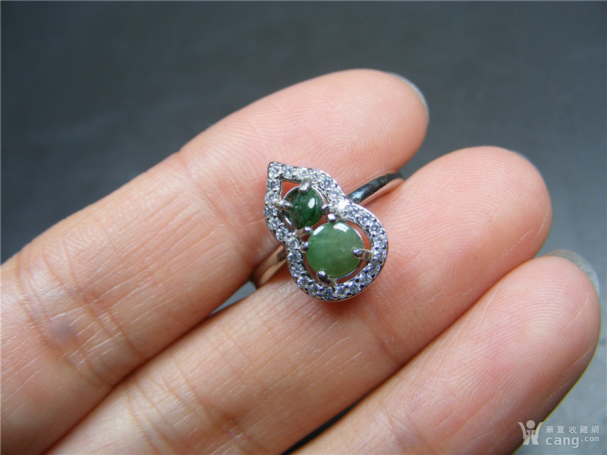 129 合金收缩式镶A货冰种满绿翡翠葫芦形戒指一枚