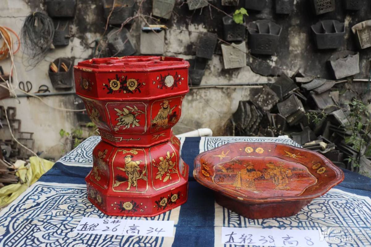 民俗老物件怀旧老家具 老木手绘果盘加高足茶托,食盒,手捧篮