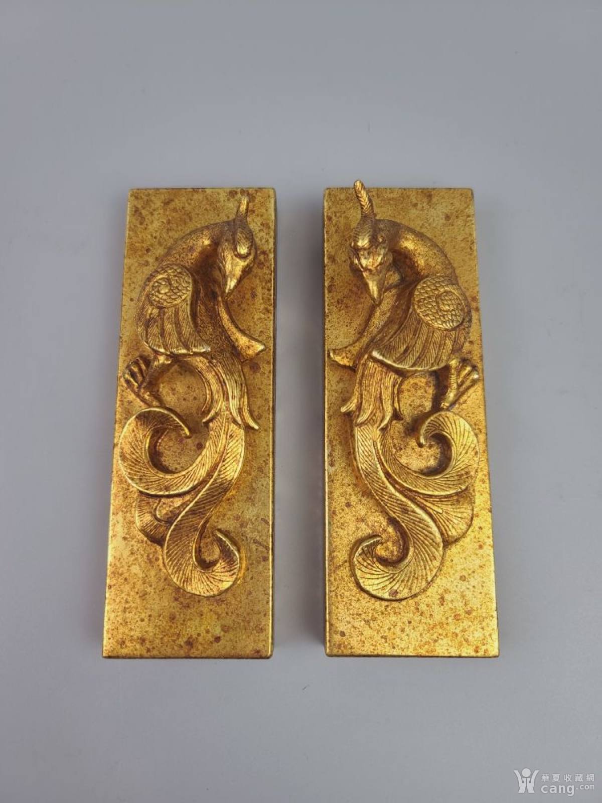 珍藏铜鎏金,凤凰八宝镇尺一套,