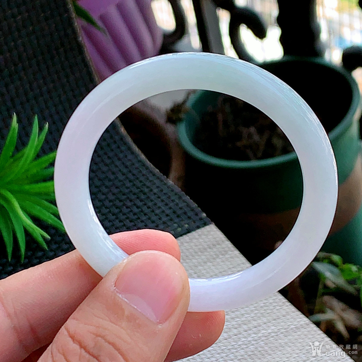 缅甸天然翡翠A货冰透水润飘绿圆条手镯51.3圈口
