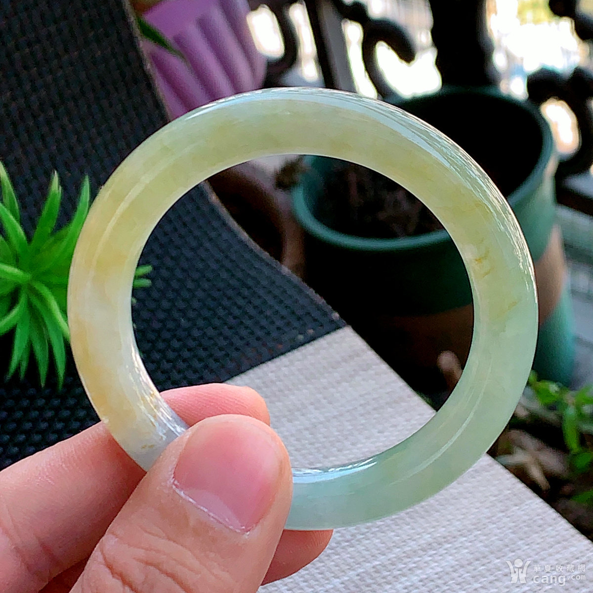 缅甸天然翡翠A货冰透水润黄翡圆条手镯53.1圈口