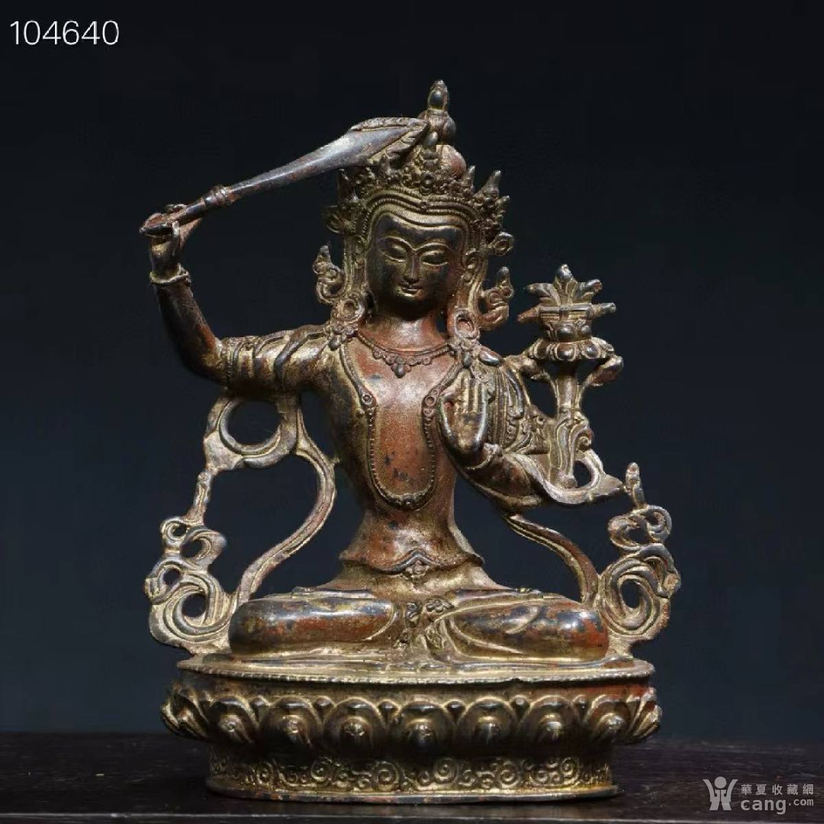 旧藏珍品 居家供奉宗教 铜 拓金 【文殊菩萨】 佛像
