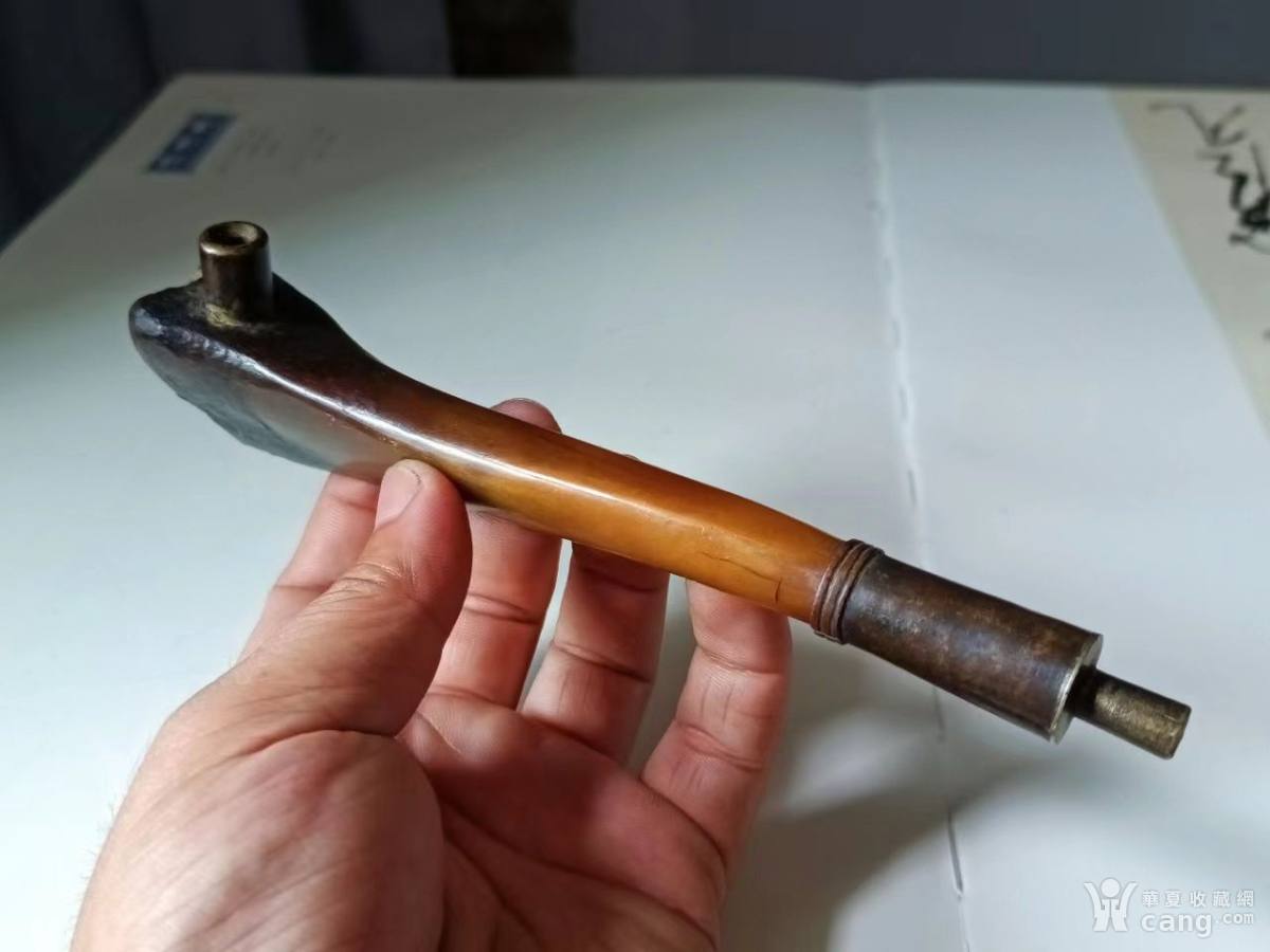 『精致老烟具 • 镶铜烟袋』 清代,鹰骨镶三色铜,长18,