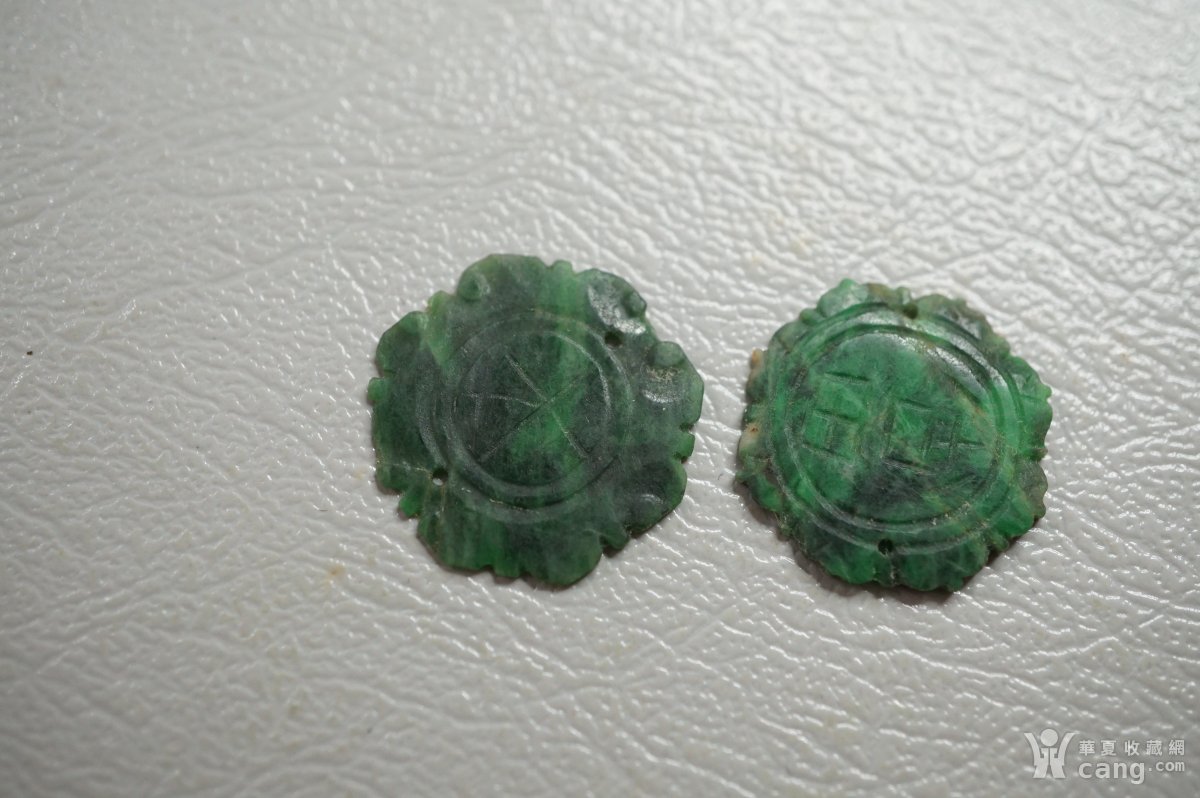 翡翠满绿镶嵌件一对E140