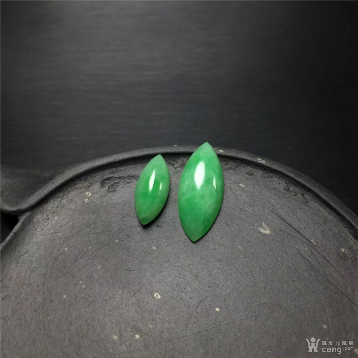 b260创汇期糯冰种飘阳绿翡翠马眼形双尖戒面镶嵌件2个