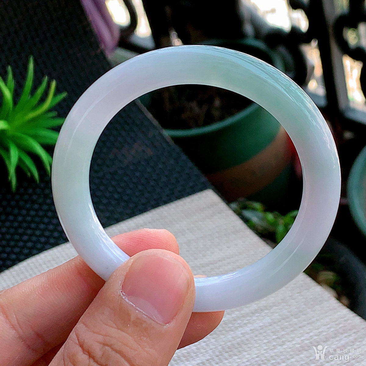 缅甸天然翡翠A货冰透水润飘绿圆条手镯53.2圈口