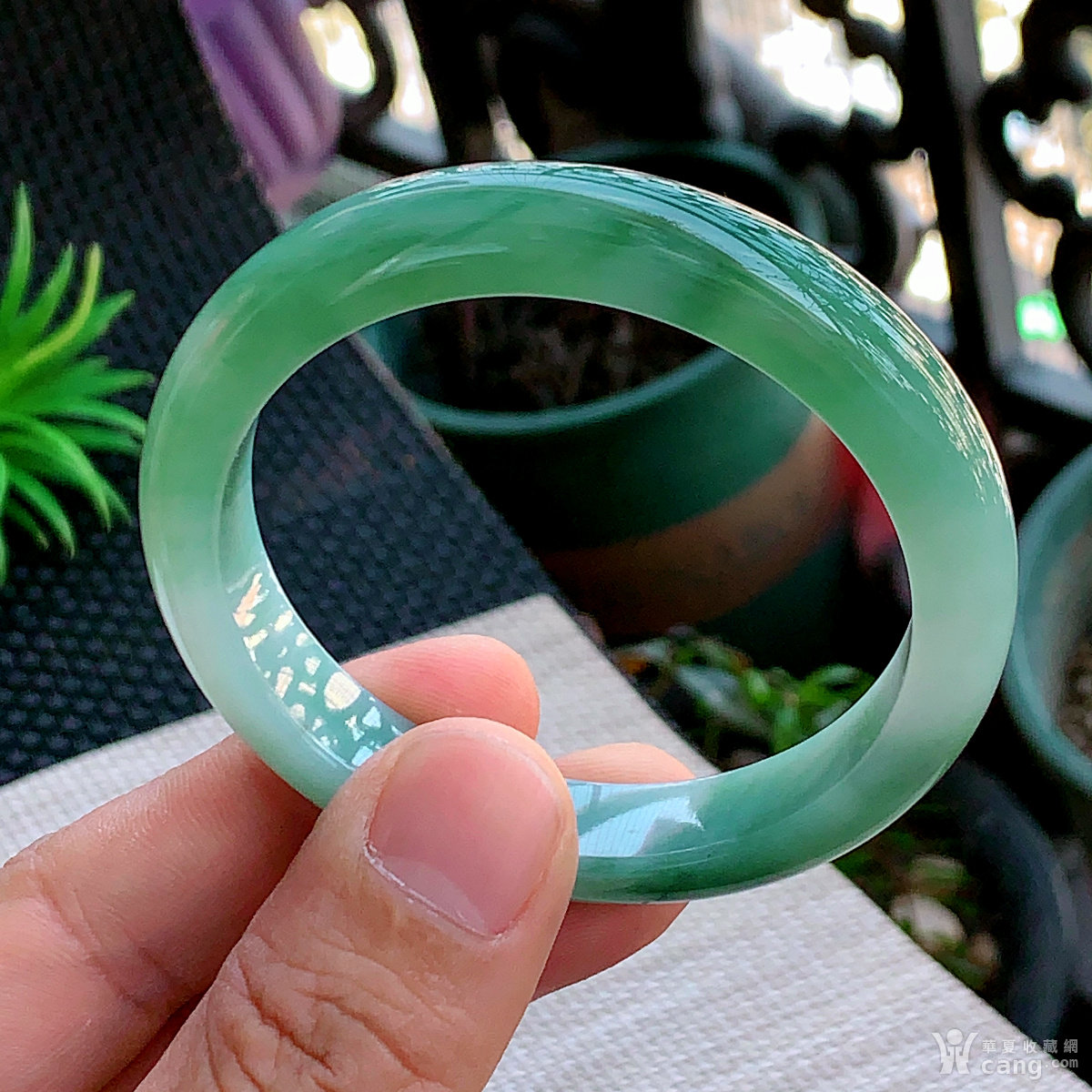 缅甸天然翡翠A货冰透水润飘绿宽边手镯57.3圈口