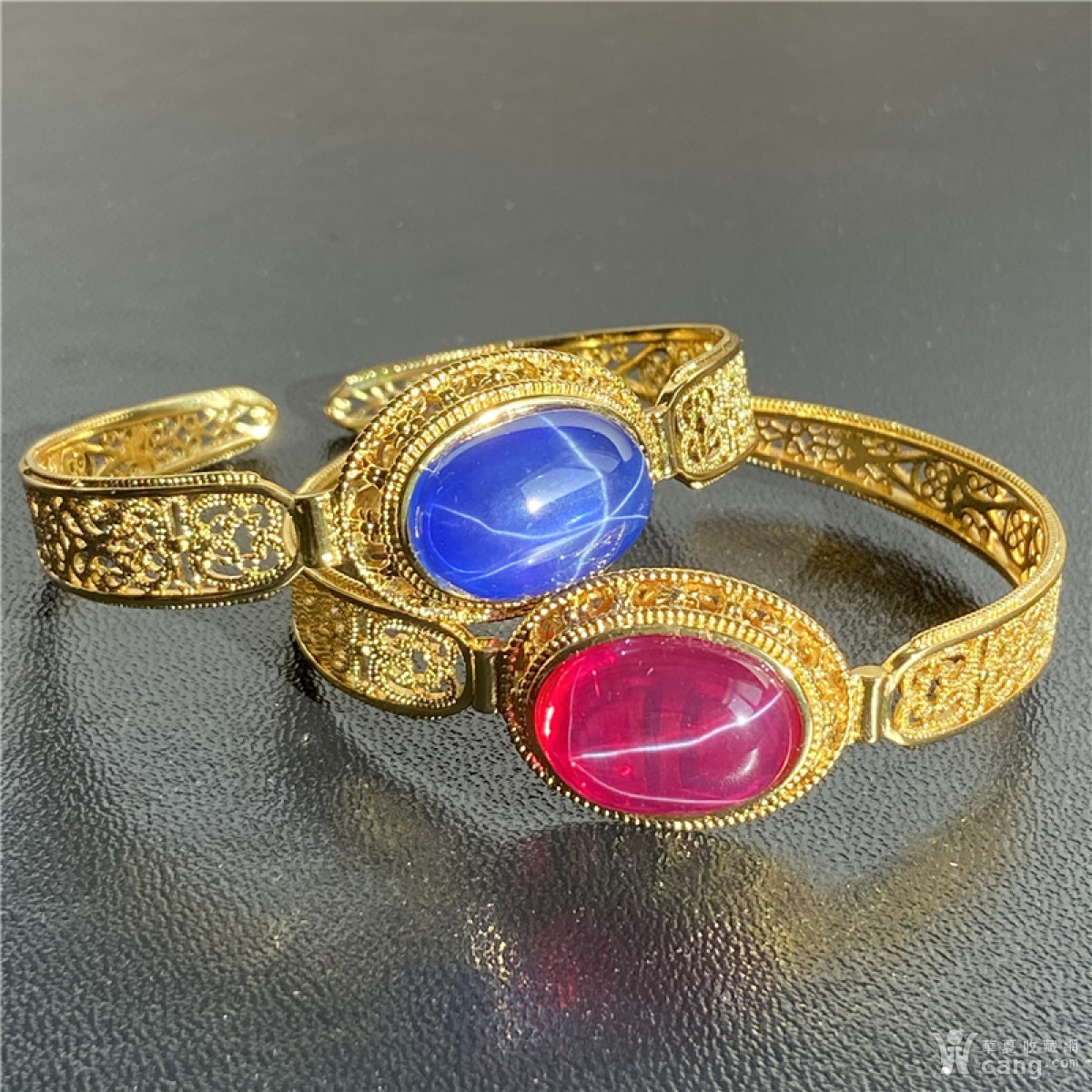 天然星光红宝石蓝宝石古法银鎏金手镯子颜色选择联系一只价格