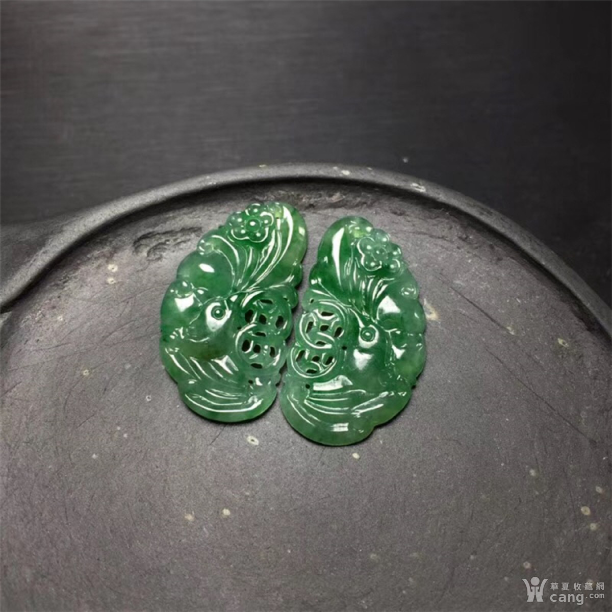 b442创汇期糯冰种飘绿翡翠凤鸟花片镶嵌件一对