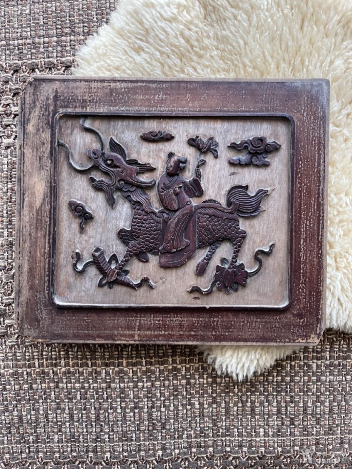 一片老花板木雕麒麟送子精美