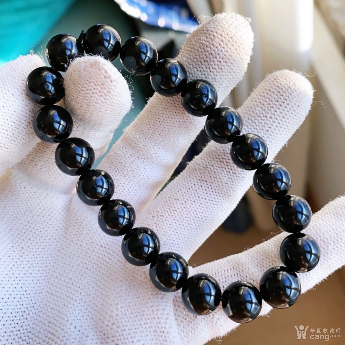 B886浓黑墨玉天然原矿新疆和田玉亮面圆珠手串手链送证书!