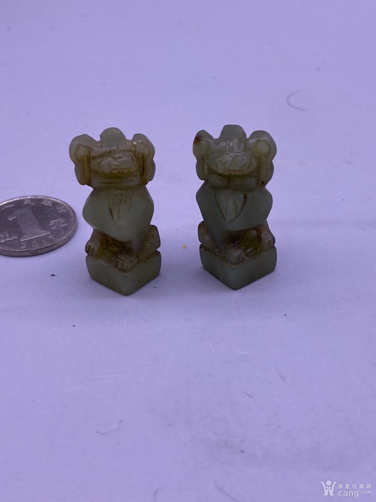 老玉狮子一对,尺寸3.6*1.3*1.4厘米,品相如