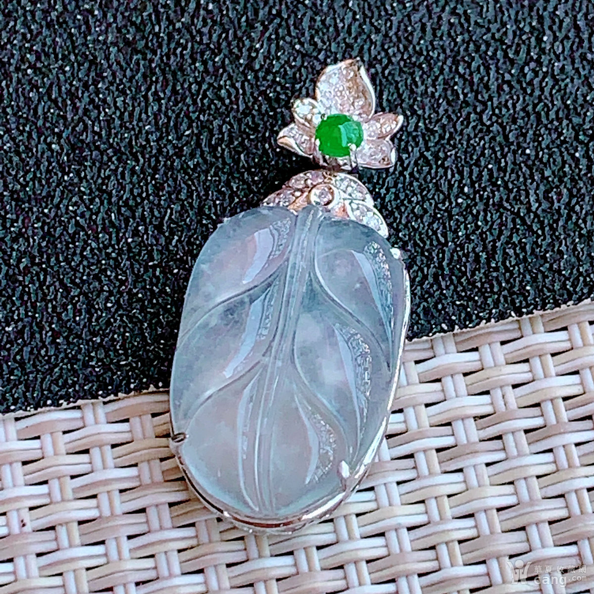 缅甸天然翡翠A货18k金伴钻冰种起荧光金枝玉叶吊坠