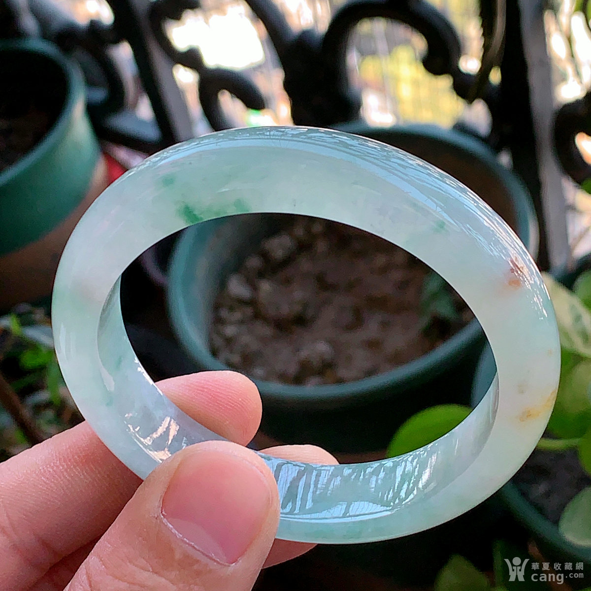 缅甸天然翡翠A货冰透水润福禄寿三彩宽边手镯58.6圈口