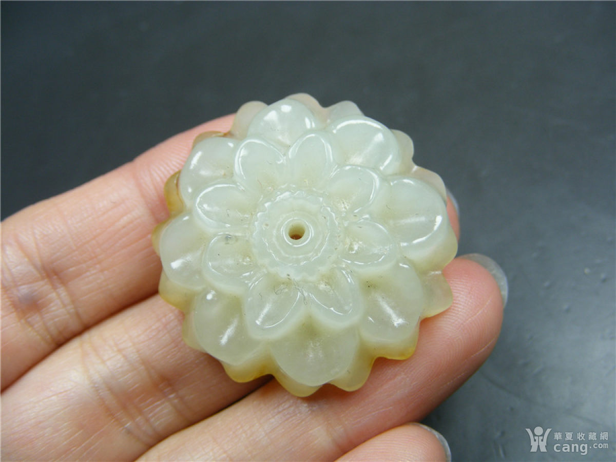 102 和田玉带沁中间带孔打洼手工雕多瓣大玉花坠佩