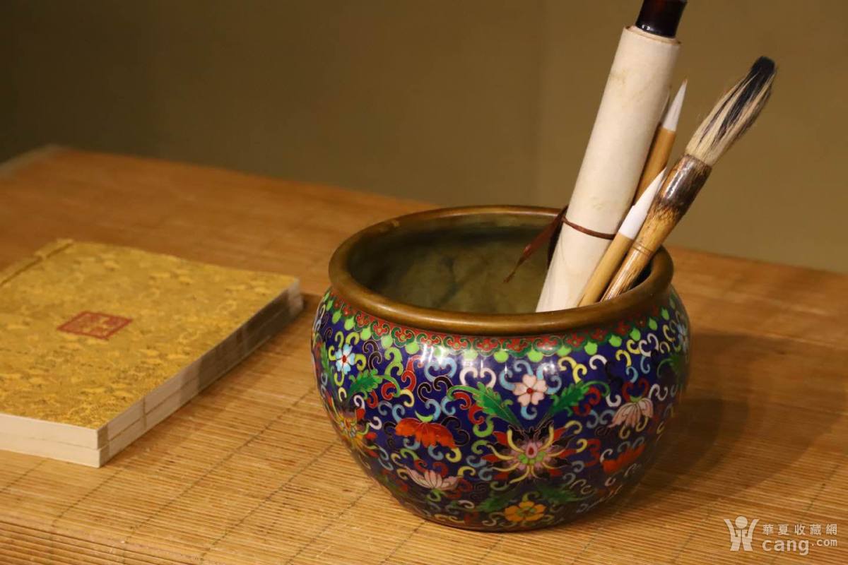 景泰蓝缠枝莲卷缸 此缸铜胎厚重,唇口鼓腹收足,线条流畅