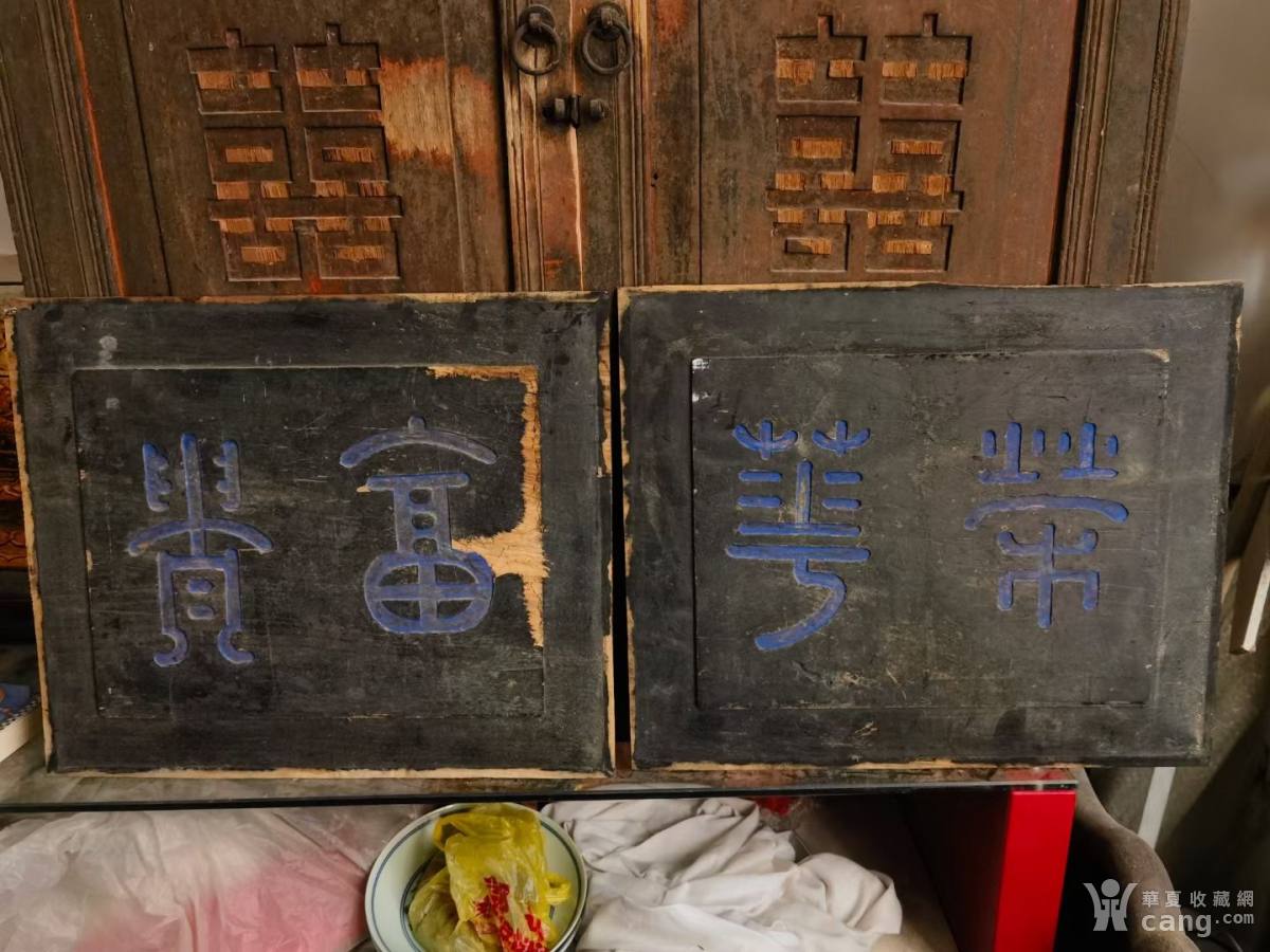 荣华富贵字匾牌匾一对,独板樟木,长42.5,宽35.5,